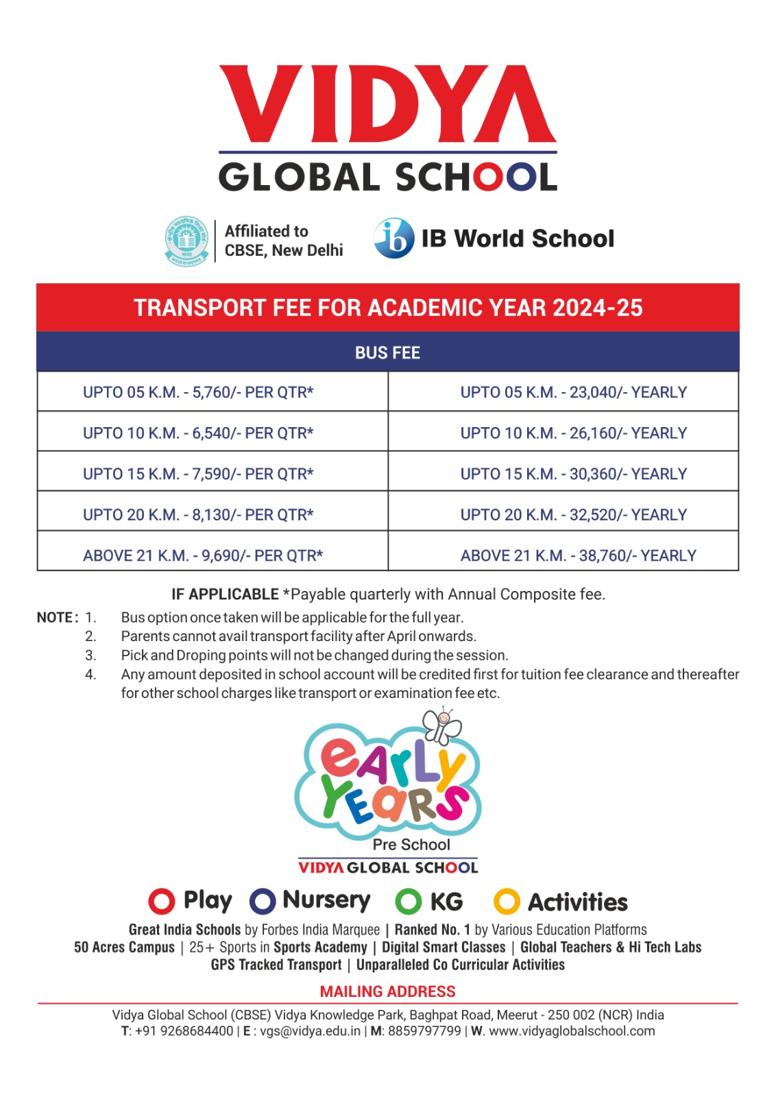 - Transport fee will be payable for whole year on quarterly basis only as per specified account policy.